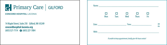 Concord Hospital-Gilford Primary Care Appointment Card